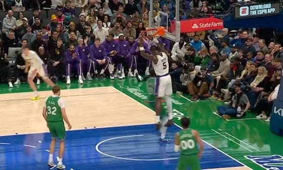 精确制导!詹姆斯长传穿越防地 艾顿篮下接球吃饼暴扣体育录像/图片